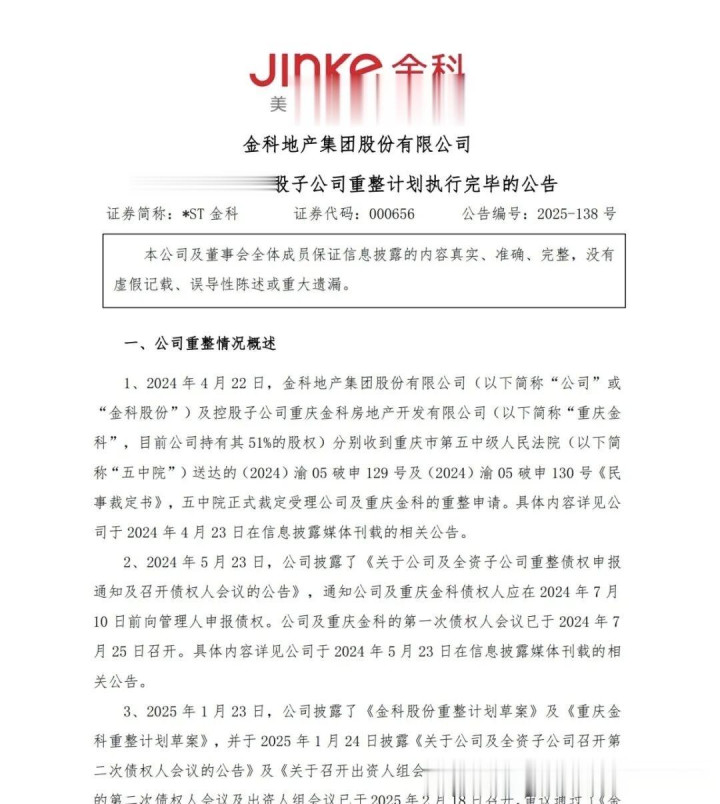 重庆本土房企金科股份的1470亿债务重整堪称标杆——这是重庆纪录级、全国房地产行业最大的重整案,涉及8400家债权人,通过引入上海品器联合体等三家产业投资人,仅用26亿元现金就撬动千亿债务清零,成为全国首家完成司法重整的大型上市房企。